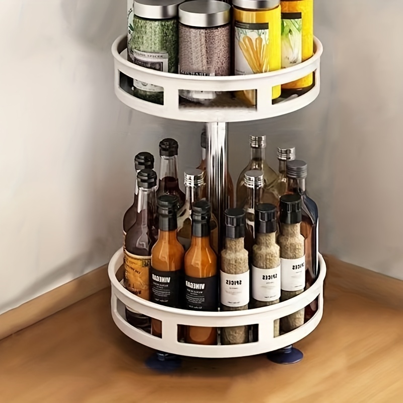 3-Tier Rotating Spice Rack Organizer - Heavy-Duty Metal Countertop Spice Shelf, Space-Saving Turntable Spice Organizer for Kitchen, Cabinet, Dining Room - Easy-Clean Surface & Stable Base