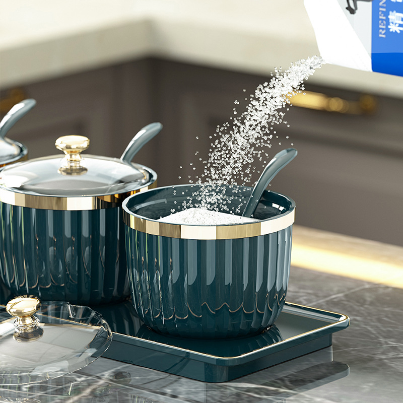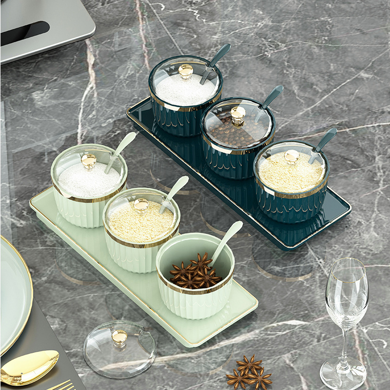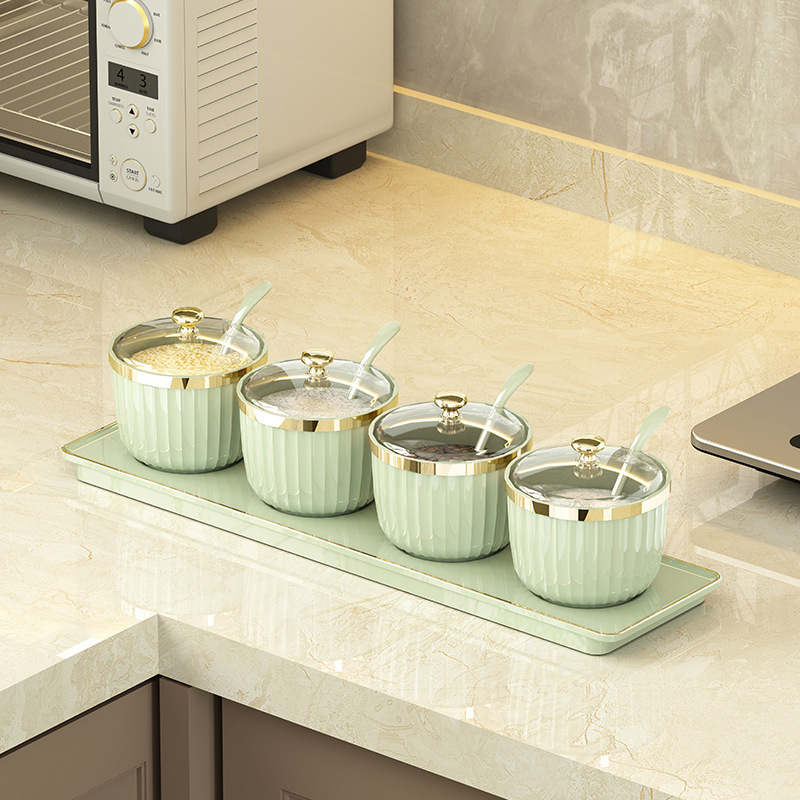 High-end Moisture-proof Large-capacity PP seasoning box set\u002Fwith small spoon and base, kitchen household salt, monosodium glutamate, seasoning separate jar storage box, seasoning jar combination., Pantry Essentials, Stackable Jars, Modern
